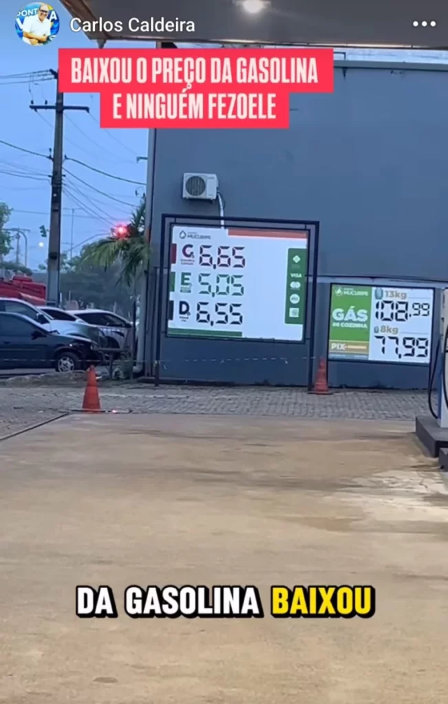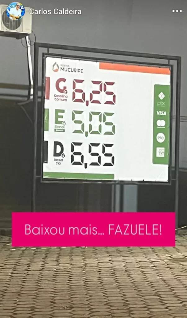 O jornalista e ativista social Carlos Caldeira usou um tom de deboche para divulgar a situação em suas redes sociais: “Vocês perceberam que a gasolina teve redução de preço? Ou não quiseram divulgar mesmo essa informação?”, observou ele. Em outra foto, onde ele mostra que o preço caiu mais, ele só escreveu: “Baixou mais… FAZUELE!”.