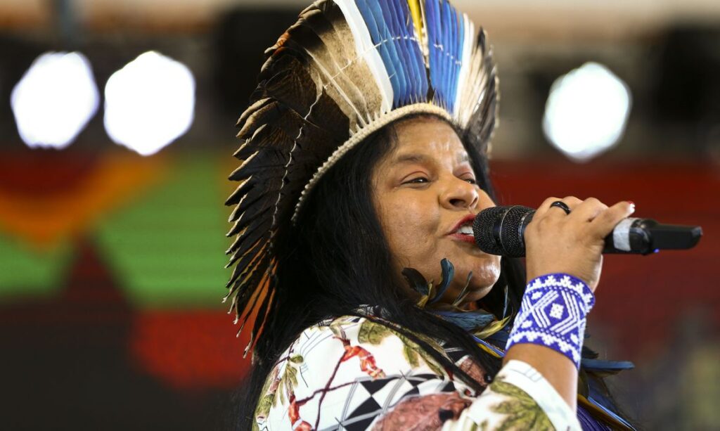 Brasília (DF), 25/04/2023 – A ministra dos Povos Indígenas, Sônia Guajajara, participa de plenária para discutir Autoridades Indígenas no Movimento e no Governo, durante o Acampamento Terra Livre. Foto: Marcelo Camargo/Agência Brasil[/caption]