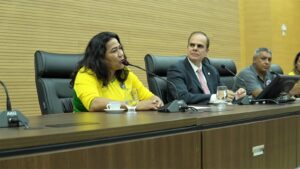 O deputado passou, em seguida, a palavra para a ex-jogadora da Seleção Brasileira de Futebol Feminino, Elissandra Regina Cavalcante (Nenê). Ela estava bastante emocionada e fez um relato da trajetória dela no esporte