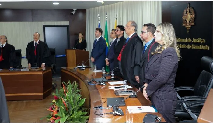 Logo após a entrada dos desembargadores que integram a Corte Estadual de Justiça, o presidente Raduan Miguel deu as boas-vindas a todos e recebeu as autoridades que compuseram ao seu lado o dispositivo de honra da solenidade. Participaram o representante do Governo do Estado, o procurador-geral do Estado, Thiago Alencar; o subprocurador-geral da Justiça, Marcelo Lima; o defensor público-geral do Estado, Victor Hugo de Souza Lima; o presidente da Assembleia Legislativa do Estado, deputado Alex Redano, e a presidente em exercício da Ordem dos Advogados do Brasil (OAB-RO), Vanessa Esber. Também prestigiaram a solenidade dentre autoridades políticas, judiciais, policiais, militares, juízes estaduais, deputados estaduais, vereadores e o prefeito de Porto Velho, Léo Moraes.