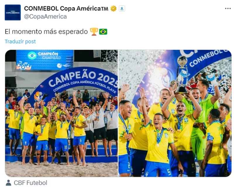 A seleção brasileira derrotou o Paraguai por 5 a 4, na noite do último domingo (2) na Arena Cavancha, em Iquique (Chile), para conquistar o título da Copa América de Beach Soccer pela quarta vez na história, após os títulos de 2016, 2018 e 2023.