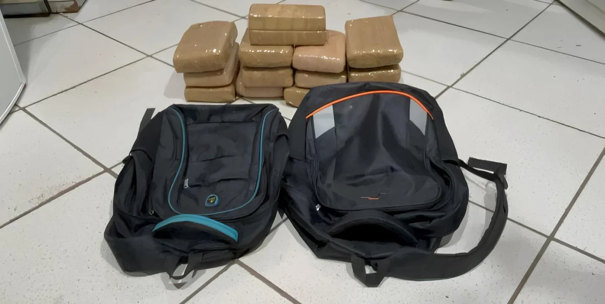 Na verificação do conteúdo das mochilas, foram encontrados 12 tabletes de substância análoga à maconha e um tablete de substância análoga à cocaína. Diante dos fatos, ela recebeu voz de prisão pelo crime de tráfico de drogas.