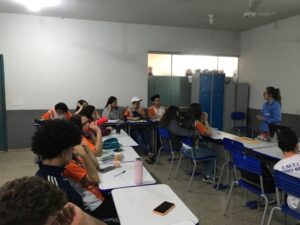 A fase de aprendizado não se encerrou com a visita às instalações. No dia seguinte, Renata Rosa, Assessora de Laboratório do SAAE, visitou a escola para conduzir uma palestra de 45 minutos, elucidando aspectos técnicos sobre todo o processo de tratamento de água.
