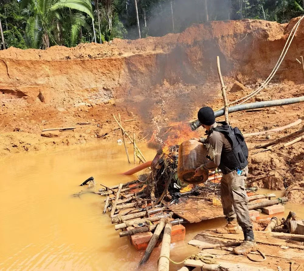 As forças policiais de cinco instituições de segurança destruíram mais de R$ 600 mil em materiais durante uma operação de combate ao garimpo ilegal, desmatamento e extração ilegal de madeira em Rondônia. Trator, barcos, gerador de energia e motocicleta foram incendiados.