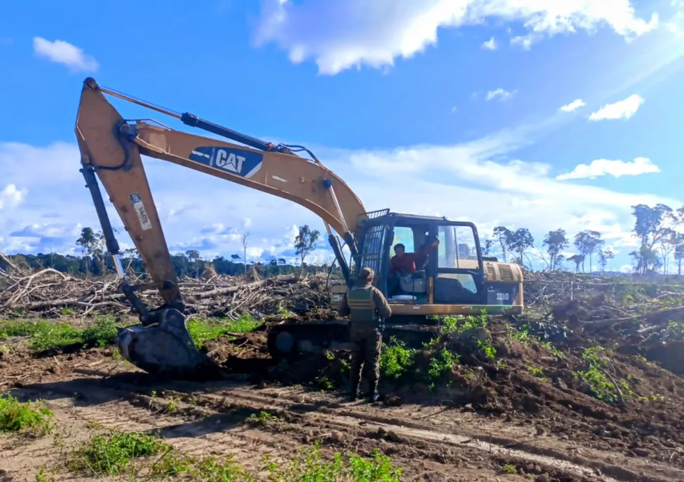 Dentro da área fiscalizada, os policiais militares encontraram duas máquinas utilizadas para derrubar a floresta e causar danos ambientais. O maquinário foi apreendido.