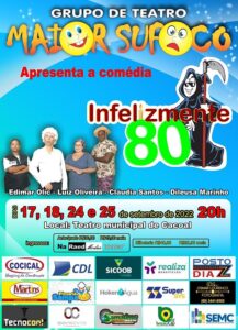 No próximo dia 17 Cacoal e região terá um evento imperdível com o conceituado Grupo Teatral Maior Sufoco, que estreia a peça INFELIZMENTE 80. O evento será o 24º espetáculo inédito produzido pelo grupo, que começou suas atividades em 2003.