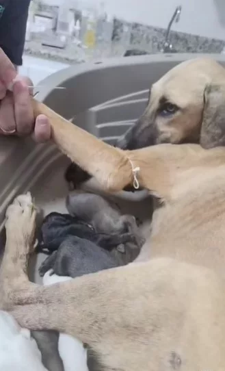 E a cadelinha, que recebeu o nome de Pamonha, foi levada à Prontodog, onde ela e os filhotes foram prontamente acolhidos pela equipe. Ela já está se alimenta sozinha (com Recovery e fígado). Os filhotes estão recebem suplementação e leite, mas infelizmente um filhote faleceu na quinta (06).