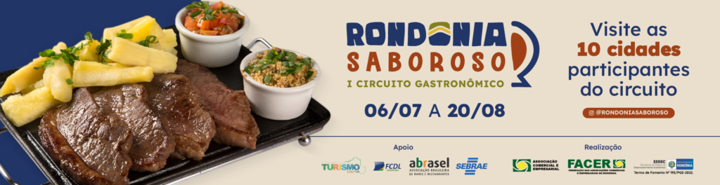 Coordenador do 1º Circuito Rondônia Saboroso, Gerson Zanatto também não escondeu a sua satisfação. “A nossa gastronomia é muito rica e o potencial dos nossos estabelecimentos é muito grande. Todos que estão participando se desafiaram a criar um prato exclusivo para o Circuito e agora o público tem a oportunidade de experimentar novos sabores, sensacionais. Em nome de toda a organização, quero agradecer a todos os estabelecimentos que acreditaram nesse projeto e estão conosco no Rondônia Saboroso em suas três temporadas, em 10 municípios rondonienses”, ressaltou. O 1º Circuito Gastronômico do estado de Rondônia é um convite para conhecer os pratos criados com técnicas da cozinha afetiva e que remetem a sabores memoráveis. Neste circuito pelos sabores de Rondônia, cada estabelecimento participante reúne técnica, emoção, histórias, alegria e, claro, muito sabor para a composição do seu prato. Tudo isso usando ingredientes locais e rondonienses. Esta é a missão do Rondônia Saboroso!   O Circuito Dividido em três temporadas, o Rondônia Saboroso acontece em 10 municípios e reúne cerca de 100 estabelecimentos envolvidos neste primeiro festival rondoniense de gastronomia. A 1ª Temporada, lançada nesta semana em Cerejeiras, Cacoal e em Pimenta Bueno, segue até o dia 23 de julho. Já a segunda temporada tem início no dia 13 de julho e segue até dia 31, nos municípios de Ariquemes, Machadinho D’Oeste e Porto Velho. Por fim, a 3ª e última temporada acontece nos municípios de Jaru, Ji-Paraná, Ouro Preto do Oeste e Presidente Médici, entre os dias 02 e 20 de agosto. Vale destacar que neste modelo de circuito gastronômico, o Rondônia Saboroso acontece nos próprios estabelecimentos. Pelo período definido, todos os estabelecimentos participantes estarão identificados e incluirão nos seus menus o prato exclusivo criado para o circuito.
