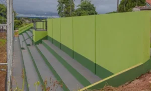 Nesse pacote de melhorias no Espaço Alternativo foi construída a arquibancada para o público, também foi construída a rampa de acessibilidade com a construção de entradas para os cadeirantes terem o seu acesso seguro ao local.