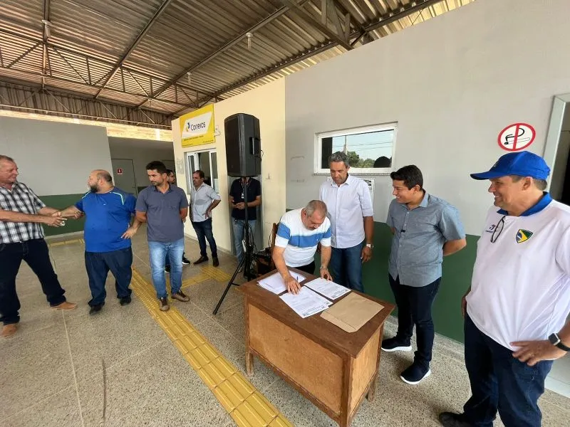O prefeito Adailton Fúria aproveitou a solenidade de assinatura desse importante empreendimento para Riozinho para também fazer a entrega de um ônibus, adquirido pelo município em convênio com o Governo Federal, o qual será utilizado para o transporte público, conectando o distrito ao centro da cidade.