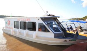 Ambulância fluvial, batizada com nome de índio pioneiro de Calama, oferece segurança e comodidade para atendimentos de urgência e emergência