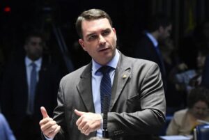 O senador Flávio Bolsonaro (PL-RJ) apresentou uma emenda para alterar a definição jurídica e penal da prática miliciana durante a reunião da Comissão da CCJ (Constituição de Constituição e Justiça) do Senado nesta 4ª feira (10.mai.2023). Os congressistas debatiam o PL 3283, de autoria do senador Sergio Moro (União-PR), que objetiva criminalizar planos para atacar autoridades.