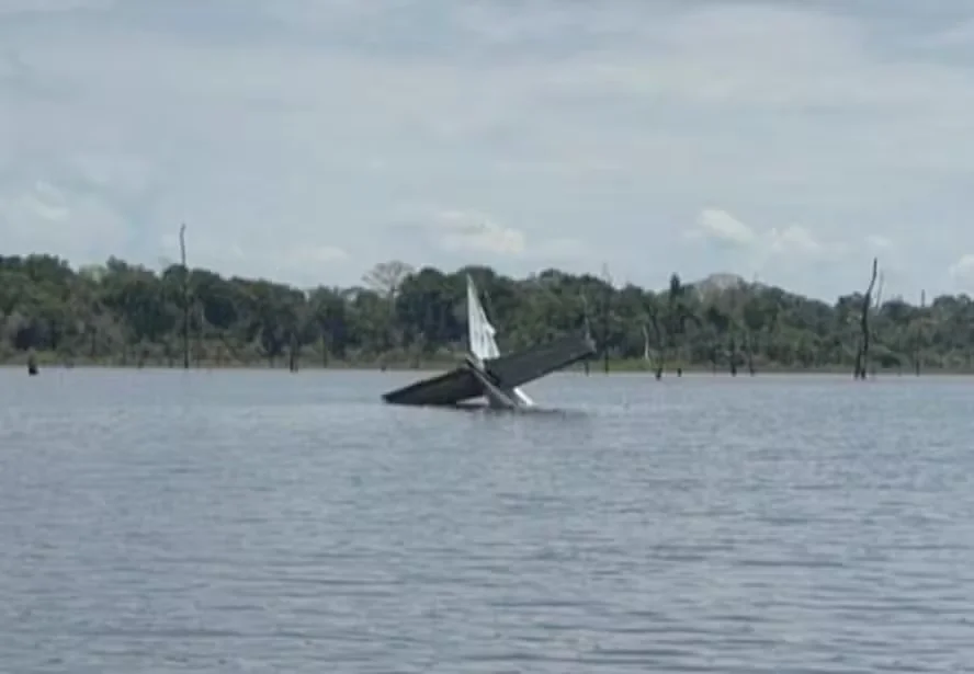 Imagens divulgadas nas redes sociais oficiais da Força Aérea mostram o bimotor parcialmente submerso e os pacotes da droga recuperados durante a operação.