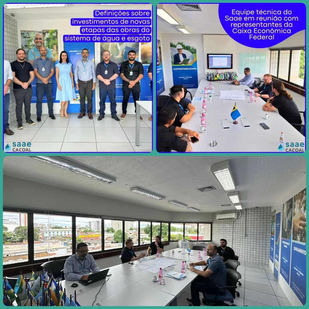 Em um encontro estratégico realizado nesta semana, a equipe técnica do Serviço Autônomo de Água e Esgoto (Saae) de Cacoal reuniu-se com representantes da Caixa Econômica Federal para discutir o direcionamento de investimentos nas próximas etapas das obras de água e esgoto do município.