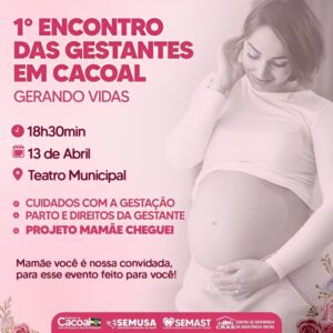 As mães gestantes de Cacoal tem um evento importante a colocar em sua agenda. Trata-se do Encontro de Gestantes “Gestando vidas”, com informações sobre cuidados com a gestação e os direitos da gestante em relação ao parto.