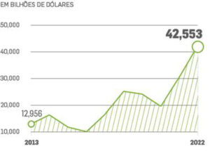 Em 2022, o Brasil se consolidou como o nono maior produtor de petróleo do mundo e apareceu entre os dez principais exportadores.