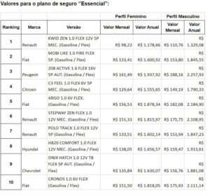 O Renault Kwid, carro 0km mais barato do mercado (junto com o Mobi), foi de R$ 68.990 para R$ 58.990 após a medida. O veículo também tem o seguro mais em conta, custando a partir de R$ 98,22 mensais no plano essencial para o perfil feminino. No masculino há um acréscimo de cerca de R$ 12,24 na mensalidade.]]>