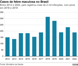 O carrapato-estrela é um dos principais transmissores da febre maculosa © Getty Images[/caption] BBC News História por André Biernath – Da BBC News Brasil em Londres  O recente surto de febre maculosa na região de Campinas, no interior de São Paulo, chamou a atenção para a alta taxa de mortalidade da doença: segundo dados do Ministério da Saúde, um terço dos indivíduos contaminados na última década morreu. O quadro, transmitido principalmente por picadas de carrapatos-estrela (Amblyomma sculptum), é causado por algumas bactérias do gênero Rickettsia — mais especificamente as espécies Rickettsia rickettsii e Rickettsia parkeri. Mas o que explica essa proporção tão alta de mortes relacionadas à febre maculosa? Há pelo menos cinco fatores por trás desse cenário, segundo publicações científicas e especialistas ouvidos pela BBC News Brasil: o comportamento do agente transmissor; a agressividade do patógeno; a demora no diagnóstico; a evolução rápida dos sintomas; e algumas mudanças ambientais. O que dizem os números De acordo com portarias publicadas pelo Ministério da Saúde, a febre maculosa é uma doença de notificação obrigatória — o que significa que todos os casos detectados devem ser informados aos órgãos de vigilância do Brasil.Isso permite conhecer o histórico da enfermidade — e como ela vem se comportando nos últimos anos. As estatísticas do último boletim epidemiológico publicado pelo governo federal, compiladas pela BBC News Brasil, mostram que, entre 2012 e 2022, foram notificados 2.209 casos e 753 mortes por febre maculosa no país. Esses eventos se concentram principalmente nas regiões Sudeste e Sul — as regiões Norte, Nordeste e Centro-Oeste têm menos de dez infecções e óbitos provocados pelas bactérias Rickettsia registradas por ano. Esses dados permitem inferir uma mortalidade por febre maculosa de 34% na última década. O médico Marcelo Simão Ferreira, professor titular de Infectologia da Universidade Federal de Uberlândia, em Minas Gerais, explica que existem três grandes polos de febre maculosa no país. “Os casos se concentram principalmente no interior de São Paulo, na região de Campinas, Jundiaí e Piracicaba; no Rio de Janeiro, na serra de Petrópolis e Teresópolis; e em Minas Gerais, no entorno de Belo Horizonte e Contagem.” O Ministério da Saúde também informou que o Estado de São Paulo — o epicentro do surto atual — registrou 12 casos da doença em 2023. Desses, quatro indivíduos se recuperaram, seis morreram e dois continuam em investigação. No país todo, são 53 casos e oito óbitos neste ano, mas é provável que os números sejam atualizados e se modifiquem ao longo dos próximos meses. O médico Marcos Vinícius da Silva, responsável pelo Ambulatório de Doenças Tropicais e Zoonoses do Instituto de Infectologia Emílio Ribas, em São Paulo, pondera que a febre maculosa é uma doença com muita subnotificação. “O que vemos nos hospitais é apenas a ponta do iceberg. Há os casos leves, que passam como uma alergia e nem são avaliados adequadamente”, diz ele. E, mesmo entre os casos mais graves que aparecem nos boletins epidemiológicos e nas manchetes, há muita confusão com outros problemas de saúde — como explicamos a seguir. Os 5 fatores que explicam alta mortalidade da febre maculosa © BBC © Getty Images 1. Transmissor sorrateiro A temporada de outono-inverno é o período de maior incidência de carrapatos. É nessa época que eles se reproduzem e que surgem as larvas, conhecidas popularmente como micuins. Esse “filhote” de carrapato é bem pequeno e difícil de detectar. Ele pode se grudar ao corpo e permanecer ali por um tempo antes de ser removido. Caso ele carregue o patógeno por trás da moléstia, a junção de todos esses fatores aumenta o risco de transmissão. 2. Patógeno agressivo Marcelo Simão Ferreira, que é ex-presidente da Sociedade Brasileira de Infectologia, também pontua que as bactérias Rickettsia causadoras da febre maculosa têm um comportamento bem agressivo quando invadem o corpo humano. “Elas infectam as células que constituem as paredes dos vasos sanguíneos”, diz. “Geralmente, o micro-organismo começa a afetar pequenos vasos, mas logo as lesões se espalham para a pele e outros órgãos, como o fígado, os rins, o coração e até o sistema nervoso central.” O quadro piora rapidamente e gera uma sepse — uma inflamação sistêmica em que o corpo deixa de funcionar como o esperado. 3. Demora no diagnóstico O segundo motivo por trás da alta mortalidade tem a ver com as manifestações mais comuns da febre maculosa. O grande problema é que eles são bem parecidos ao que acontece com outras doenças infecciosas relativamente frequentes, como dengue, leptospirose e meningite. Essa similaridade de sintomas entre doenças infecciosas pode atrasar o diagnóstico correto — como a febre maculosa é mais rara, os profissionais de saúde tendem a suspeitar de outras doenças em primeiro lugar. “É muito comum que o paciente chegue ao pronto-socorro com febre e isso cria uma suspeita automática de dengue, já que é essa é uma condição por trás de grandes epidemias no país”, descreve Ferreira. O Ministério da Saúde diz que os principais sintomas da febre maculosa incluem: Febre; Dor de cabeça intensa; Náusea e vômitos; Diarreia; Dor abdominal; Dor muscular constante; Inchaço e vermelhidão na palma das mãos e na sola dos pés; Gangrena nos dedos e nas orelhas; Paralisia dos membros que se inicia pelas pernas e vai subindo até os pulmões, o que pode provocar graves problemas respiratórios. Silva, que também é consultor de zoonoses do Ministério da Saúde, detalha que essas manifestações costumam começar sem nenhuma característica especial. “Os sintomas da febre maculosa são inespecíficos. Geralmente a pessoa tem febre alta, dor de cabeça, mal-estar, falta de apetite…”, lista o mé