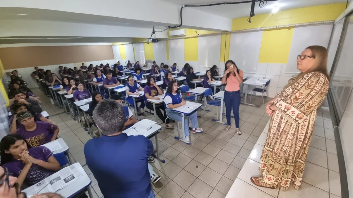 Ellis Regina visitou as três salas onde o simulado estava sendo aplicado e conversou com os alunos. Durante a visita, ela anunciou que os cinco estudantes com melhor desempenho na prova seriam premiados.