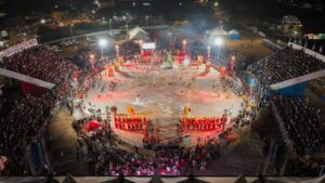 Após 7 anos sem o Festival Folclórico de Guajará-Mirim, o Duelo na Fronteira, de forma presencial, a 21ª edição do evento foi marcada por emoção, quando neste sábado (14), os dois bois-bumbá se apresentaram na arena do bumbódromo Márcio Paz Menacho. O evento é uma realização do Governo de Rondônia por meio da Secretaria de Estado da Juventude, Cultura, Esporte e Lazer – Sejucel e em parceria com a Prefeitura de Guajará-Mirim. O Festival prossegue neste domingo (15), com novas apresentações das agremiações, a partir das 19h.