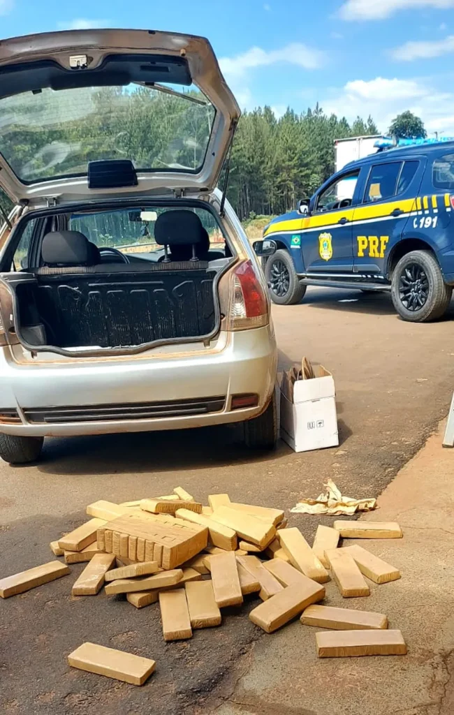 Segundo a Polícia Rodoviária Federal (PRF), que fez o flagrante, a droga estava em um Fiat Palio e a ordem de parada ao motorista foi dada após ele fazer duas ultrapassagens em faixa contínua da rodovia, proibida por lei.
