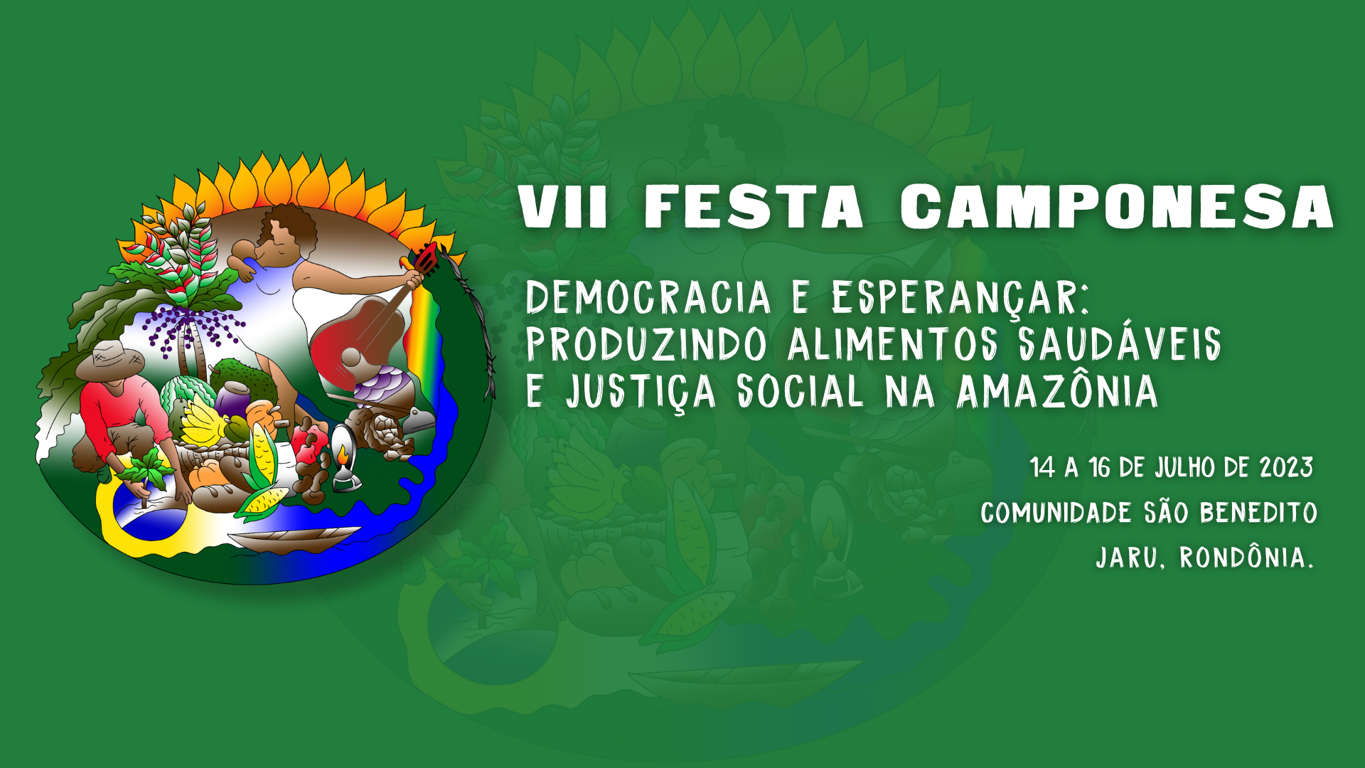 Organizações que compõem a Via Campesina – articulação de movimentos do campo, vão realizar de 14 a 16 de julho de 2023, na comunidade São Benedito em Jaru (RO), a 7ª edição da Festa Camponesa. Neste ano o evento contou com apoio da deputada estadual Cláudia de Jesus (PT), por meio da destinação de emenda parlamentar.