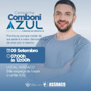 No próximo mês, dia 09 de setembro, a Associação Assistencial à Saúde São Daniel Comboni (ASSDACO) realiza mais uma campanha de prevenção ao câncer de próstata em Rondônia. Desta vez, a campanha Comboni Azul acontece na sede da própria ASSDACO, localizada na Rua Rosilene Traspadini, no bairro Eldorado.