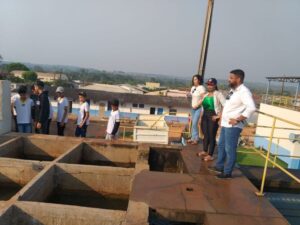 Orientados por Renata Rosa, Assessora de laboratório do SAAE, os estudantes exploraram cada etapa, desde a captação da água do Rio Machado até seu tratamento na Estação de Tratamento de Água (ETA).
