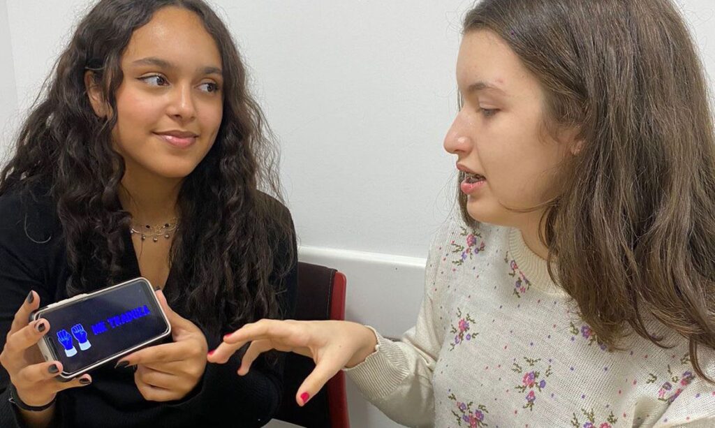 Luisa e a colega de classe Sarah Teixeira Willig, também de 15 anos, perceberam que existiam muitos tradutores online para diferentes idiomas, mas dificilmente um tão rápido e fácil para Libras. Com o projeto Me Traduza, aplicativo que converte a Língua Brasileira de Sinais para o português e vice-versa, as estudantes conquistaram o segundo lugar na competição de empreendedorismo estadual Empreenda Senac no ano passado, quando ainda estavam no primeiro ano do ensino médio