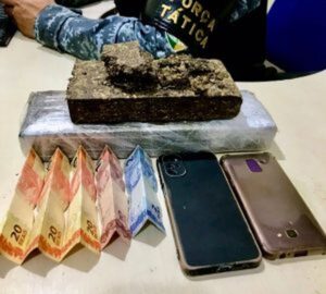 Diante das informações de um possível ponto de venda de drogas na residência de um dos abordados, foi realizada uma varredura com apoio do Canil do 2º BPM e encontrada uma porção da mesma substância apreendida, além de pedaços de fitas que são utilizadas para envolver os tabletes. Os suspeitos, a motocicleta e a substância entorpecente foram conduzidos para a Unidade Integrada de Segurança Pública para providências necessárias.