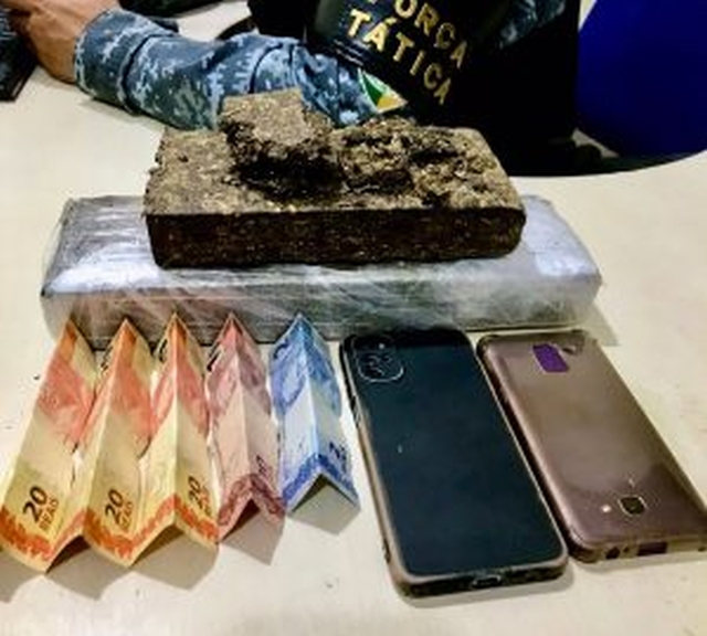 Durante patrulhamento de rotina, na tarde desta quinta-feira, 27, uma guarnição da Força Tática do 2º Batalhão de Polícia Militar (2º BPM) avistou dois homens de posse de uma sacola trafegando em uma motocicleta no sentido contrário ao da equipe, que, ao perceberem a presença da viatura policial, os indivíduos empreenderam fuga por um loteamento, mas foram interceptados logo em seguida. Após proceder a abordagem, foi verificado que na sacola havia 2 tabletes de uma substância aparentando ser maconha, pesando 2 Kg.