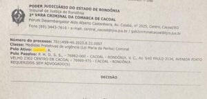 Cacoal, RO – A Justiça concedeu medida protetiva a uma servidora pública após denúncia de assédio, agressão verbal e ameaças por parte dos vereadores Paulo Henrique e Valdomiro Corá. A decisão foi proferida pela 2ª Vara Criminal da Comarca de Cacoal, em resposta a um pedido da Delegacia da Mulher.