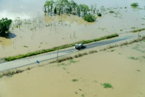 Ao sobrevoar a BR-425, que tem trechos já alagados, o Coronel BM Nivaldo de Azevedo destacou a atuação do Corpo de Bombeiros Militar de Rondônia na travessia de veículos menores. “Estamos dando apoio á população que precisa trafegar pela Rodovia, utilizando seis caminhões prancha, levando os veículos menores e ambulâncias de um lado ao outro. Também estamos com as máquinas do DER fazendo uma rota alternativa pela fazenda de um empresário, que cedeu o local, a quem agradecemos muito. É um momento de união e todos tempos que fazer a nossa parte”, pontuou.