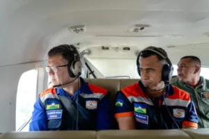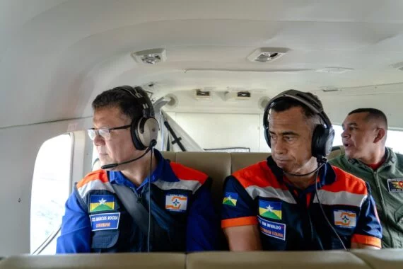 Ao lado do comandante-geral do Corpo de Bombeiros Militar (CBMRO) e coordenador de Proteção e Defesa Civil Estadual, coronel BM Nivaldo de Azevedo, o governador Marcos Rocha sobrevoou as áreas alagadas, que tem recebido atenção integral e imediata do governo do estado.